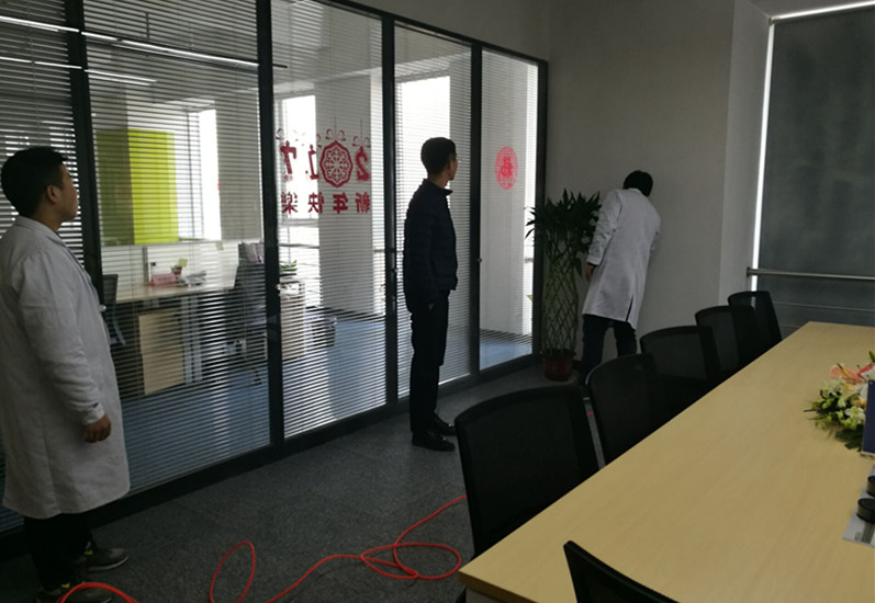 大發地產(寧波凱旸置業)全新裝修,裝修完工時間短,另外辦公家具為全新,進入室內油漆味明顯,公司員工對此反應強烈,我公司在接受寧波凱暘置業委托后,派專業工程師上門查看現場,分析污染成因,并未其制定了科學的室內空氣整體凈化治理的施工方案,得到大發地產公司領導的認可后,我公司派出治理經驗豐富的工程師和施工人員對室內辦公環境進行全面凈化,針對墻壁涂料、地毯以及辦公家具等污染源,公司具有針對性利用納米光觸媒、甲醛清除、苯清除劑等分別進行處理,施工是采用高壓霧化的狀態下進行噴涂,讓甲醛、苯系物和TVOC的全面無死角得到清除。